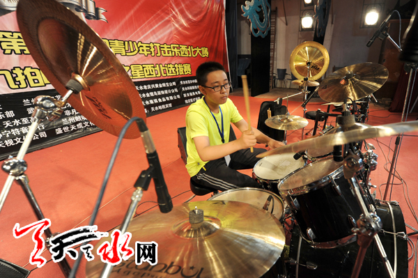 ??? 天天天水網(wǎng)訊 7月17日,參加甘肅省首屆爵士鼓大賽的選手正在比賽。甘肅省首屆爵士鼓大賽暨第九屆全國(guó)青少年打擊樂比賽西北分賽、九拍中國(guó)未來之星選拔賽
