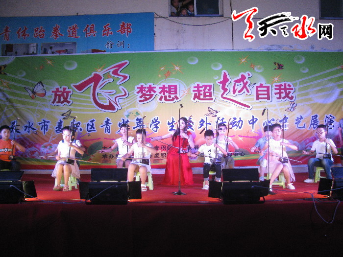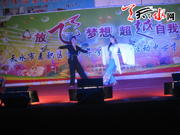 ????天天天水網(wǎng)訊(通訊員李鳳旗)7月17日晚,由麥積區(qū)體育發(fā)展中心主辦,麥積區(qū)青少年校外活動中心承辦的“放飛夢想 自我超越”暑期文藝晚會在麥積區(qū)青少年校外活動中心舉辦。