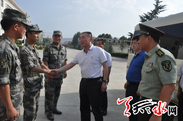????天天天水網(wǎng)訊【記者 郝勤學(xué)】“八一”前夕,天水市委書記王銳帶領(lǐng)市四大組織領(lǐng)導(dǎo)走訪慰問了駐市部隊(duì)官兵,向他們致以節(jié)日的祝賀和親切的慰問。