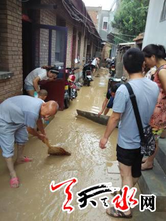 ? 天天天水網(wǎng)訊? 7月31日上午11時,暴雨驟然而至,七里墩東十里社區(qū)鍋爐廠大溝段排洪渠在經(jīng)歷1個半小時的降雨后,水位急升,洪水倒灌鍋爐廠家屬院平房區(qū)域。東十里社區(qū)立即啟動防汛應(yīng)急預(yù)案,開展防汛自救。