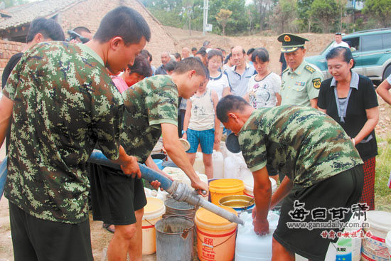 ????為緩解旱情,解決居民吃水難問題,天水市啟動應(yīng)急預(yù)案,采取限制或暫停大戶用水、分時分區(qū)供水、組織水車送水等方式,確保居民生活用水不出問題。8月4日,天水市消防官兵兵分四路,給秦州區(qū)王家半坡、左家場、羅峪溝、皇城路四個區(qū)域送去飲用水。當消防官兵將自來水接入當?shù)鼐用竦耐爸袝r,他們紛紛豎起大拇指,對消防官兵不顧炎熱送清涼的善舉表示感謝。