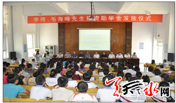 ??? 天天天水網(wǎng)訊【記者 陳少娟】8月18日,李琦、毛海峰捐資助學(xué)金發(fā)放儀式在麥積區(qū)中灘鎮(zhèn)舉行。中共天水市委書記王銳出席發(fā)放儀式。