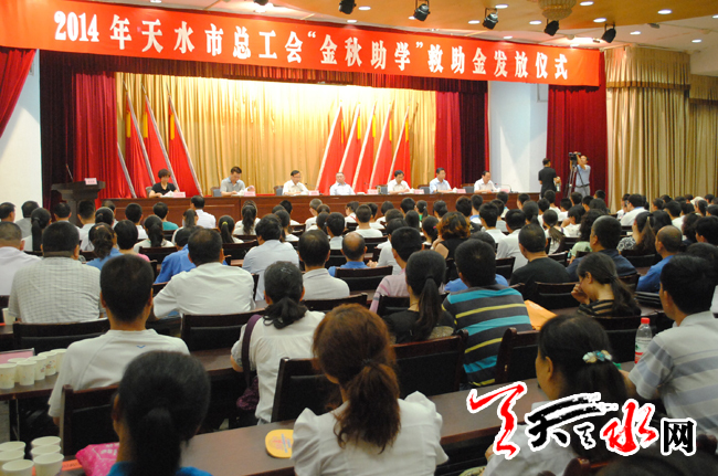 ??? 天天天水網(wǎng)訊【記者 童強】 8月19日,天水市總工會舉行2014“金秋助學(xué)”救助金發(fā)放儀式。市直37戶困難企業(yè)的100名高考二本以上正規(guī)院校錄取的困難家庭學(xué)子獲得“金秋助學(xué)”資金幫助。