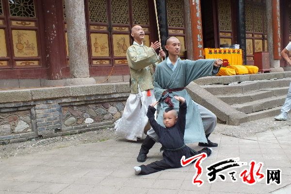 ??? 近日,由中央電視臺(tái)拍攝的《書壇巨擘王了望的三味人生》專題片在隴西開拍后,來到了我市南宅子、麥積山、南郭寺、仙人崖等地拍攝了部分場(chǎng)景,而在該劇中,我市伏羲武術(shù)學(xué)校學(xué)生王文理、黎煥荃參與了節(jié)目的拍攝。年僅5歲半的黎煥荃扮演一名問路孩童,王文理則扮演主角王了望的書童,他不僅在我市參與拍攝,還跟隨劇組前往定西等地進(jìn)行了為期四天的拍攝,贏得了導(dǎo)演及劇組人員的一致好評(píng)。