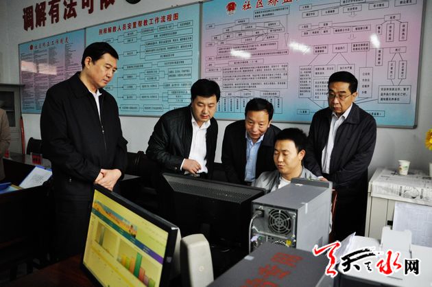 ??? 天天天水網(wǎng)訊【記者 馬放】 9月25日,甘肅省委政法委副書(shū)記、省綜治辦主任牛紀(jì)南帶領(lǐng)調(diào)研組來(lái)天水市,就網(wǎng)格化社會(huì)服務(wù)管理工作進(jìn)行調(diào)研指導(dǎo)。中共天水市委常委、政法委書(shū)記趙衛(wèi)東一同調(diào)研。