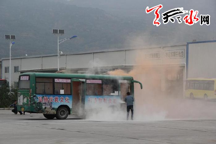 ????公交車突發(fā)火災(zāi)應(yīng)急處置演練在中心客運(yùn)站停車場(chǎng)進(jìn)行,本環(huán)節(jié)主要檢驗(yàn)了公交駕駛員對(duì)突發(fā)事件的應(yīng)急處置能力。演練中,一輛正在行駛的公交車輛突然發(fā)生火災(zāi),車輛上方濃煙滾滾,駕駛員立即將車平穩(wěn)??吭诼愤?,打開(kāi)應(yīng)急門,緊急疏散車內(nèi)乘客到安全區(qū)域,并立刻報(bào)警,同時(shí)向集團(tuán)安全應(yīng)急小組報(bào)告了情況,采取現(xiàn)場(chǎng)滅火措施。最終在各方努力下,火被撲滅,受傷乘客及時(shí)送到醫(yī)院進(jìn)行救治,火災(zāi)具體原因正在調(diào)查。