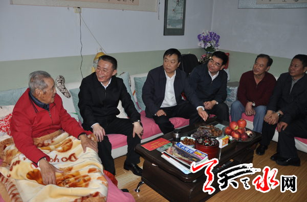 ??? 天天天水網(wǎng)訊【記者 王曉馨】 金秋九月,龍城天水處處洋溢著喜迎國(guó)慶的歡樂氣氛。9月29日,中共天水市委書記王銳帶領(lǐng)市委組織部、市老干局負(fù)責(zé)人,慰問了天水市部分老干部、老黨員,祝愿他們節(jié)日快樂、健康長(zhǎng)壽。