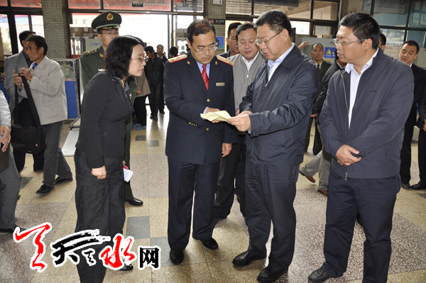 ??? 天天天水網(wǎng)訊【記者 趙曉玲】 9月29日,天水市副市長張建杰帶領(lǐng)市旅游局等相關(guān)部門負(fù)責(zé)人,對國慶節(jié)假日旅游準(zhǔn)備工作進(jìn)行了現(xiàn)場檢查。