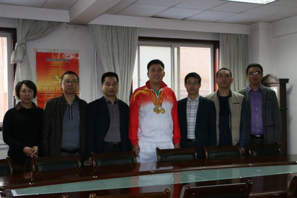 ????前不久,天水市房產(chǎn)交易中心測繪隊(duì)職工竇文成在甘肅省第九屆殘疾人運(yùn)動(dòng)會(huì)上奪得F58級鐵餅、標(biāo)槍和鉛球三個(gè)項(xiàng)目的金牌。市房地產(chǎn)管理局副局長兼市房產(chǎn)交易中心主任趙振林?jǐn)y中心領(lǐng)導(dǎo)班子對他表示祝賀。