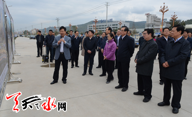 ??? 天天天水網(wǎng)訊【記者 楊璟】10月12日,甘肅省政協(xié)主席馮健身,省委副書記歐陽堅,省委常委、省紀委書記張曉蘭,省委常委、統(tǒng)戰(zhàn)部長冉萬祥,省人大常委會副主任周多明,副省長、慶陽市委書記夏紅民率全省項目觀摩活動東南片區(qū)觀摩團來天水市觀摩項目建設(shè)。天水市領(lǐng)導楊維俊、李美華、郭奇若、張明泰、蒲軍、趙建強、王鈞、張建杰、宋博華一同觀摩。