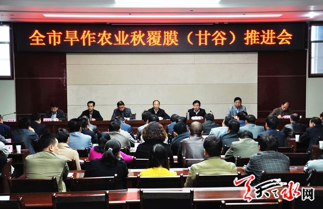 ??? 天天天水網(wǎng)訊【記者 馬放】10月21日,全市旱作農(nóng)業(yè)秋覆膜推進(jìn)會(huì)在甘谷縣召開,會(huì)議主要任務(wù)是貫徹落實(shí)全省秋覆膜工作電視電話會(huì)議精神,總結(jié)前段全市秋覆膜工作,分析存在的問題,安排部署下階段工作任務(wù)。 省農(nóng)牧廳副廳長楊祁峰,副市長霍衛(wèi)平出席會(huì)議。