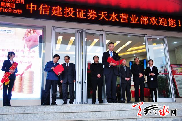 ????副市長徐慶宏在致辭中代表市四大組織對中信建投證券天水營業(yè)部的成立表示熱烈祝賀。徐慶宏說,中信建投證券天水營業(yè)部的成立,對完善全市金融服務網(wǎng)絡,構(gòu)建多元化市場金融體系,助推區(qū)域經(jīng)濟社會發(fā)展具有重要意義,也將為天水證券投資者提供新的交易平臺和渠道,進一步滿足群眾多樣化金融需求。希望中信建投證券天水營業(yè)部發(fā)揮自身優(yōu)勢,創(chuàng)新服務手段,拓展服務渠道,提升服務水平,為證券投資者提供更多更好的理財產(chǎn)品和金融服務,努力為天水證券市場穩(wěn)健快速發(fā)展和經(jīng)濟社會轉(zhuǎn)型跨越發(fā)展作出積極貢獻。