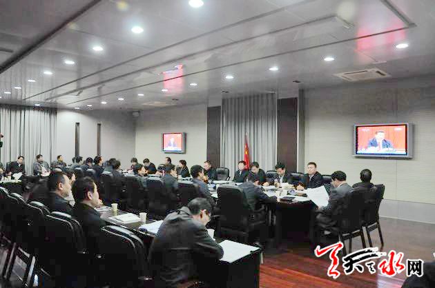 ????天天天水網(wǎng)訊(記者 郝勤學(xué))10月24日上午,市委書記王銳主持召開市委常委擴(kuò)大會議和市委中心組學(xué)習(xí)會議,學(xué)習(xí)《中國共產(chǎn)黨第十八屆中央委員會第四次全體會議公報(bào)》和人民日報(bào)社論《實(shí)現(xiàn)依法治國的歷史跨越》,安排部署全市的學(xué)習(xí)貫徹工作。王銳強(qiáng)調(diào),要全面準(zhǔn)確把握十八屆四中全會提出的一系列新思想、新觀點(diǎn)、新部署、新要求,通過學(xué)習(xí)貫徹四中全會精神,進(jìn)一步統(tǒng)一全市廣大干部群眾的思想行動(dòng),凝聚加快法治天水建設(shè)的強(qiáng)大合力。