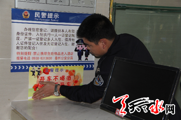 ??? 天天天水網(wǎng)訊【通訊員孫彥明】 自10月28日開始,秦州郊區(qū)交警大隊(duì)民警深入轄區(qū)酒店、旅店、餐飲、娛樂(lè)等公共服務(wù)場(chǎng)所,開展了以“關(guān)愛生命、平安出行”為主題的交通安全公益宣傳活動(dòng)。