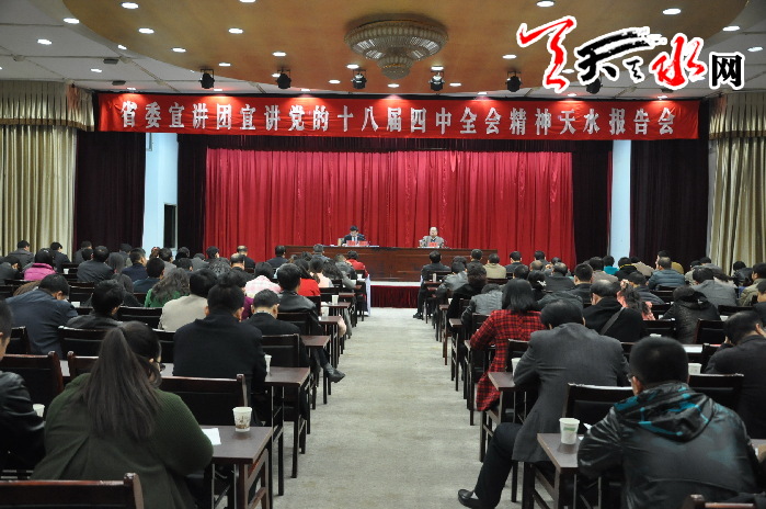 ????天天天水網(wǎng)訊【記者 王曉馨】根據(jù)省委統(tǒng)一安排部署,11月19日,省委宣講團(tuán)蒞臨我市宣講黨的十八屆四中全會(huì)精神。