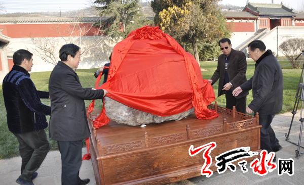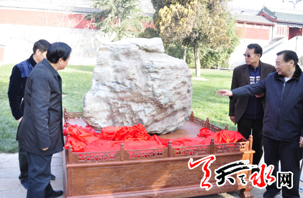 ??? 天天天水網(wǎng)訊【記者 趙曉玲】 12月8日,甘肅眾晶鑫礦業(yè)集團(tuán)為天水伏羲廟捐獻(xiàn)了一塊高約1米、寬約1.5米、重約2噸的福建華安玉景觀石,捐獻(xiàn)安放儀式當(dāng)日上午在伏羲廟舉行。