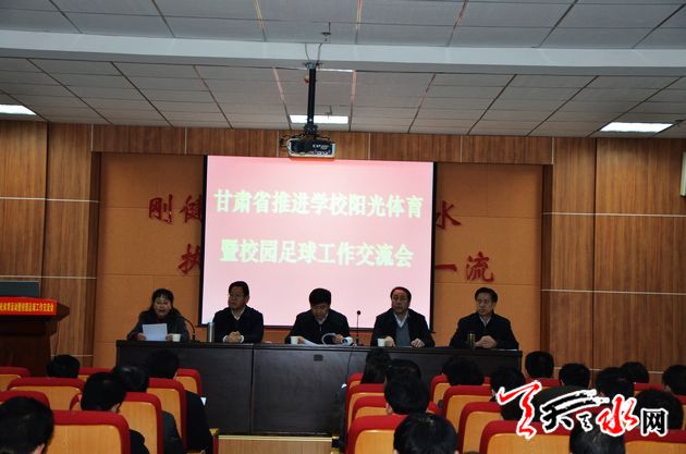??? 天天天水網(wǎng)訊【記者 王曉馨】 12月18日,全省推進學校陽光體育運動暨校園足球工作交流會在我市召開。會議分析當前形勢,總結(jié)交流經(jīng)驗,研究學校體育藝術(shù)教育綜合改革思路,進一步推動全省陽光體育運動和校園足球工作廣泛深入開展。