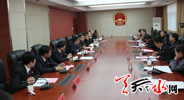 ??? 天天天水網訊【記者 王曉馨】 12月23日,甘肅省高級人民法院黨組成員、副院長唐斌一行來天水市,征求市委、市人大和駐市省人大代表對省高級人民法院工作的意見建議。