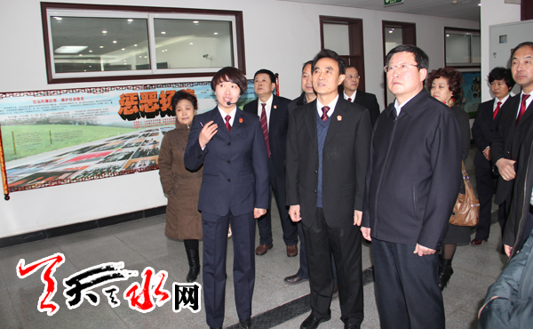 ??? 天天天水網(wǎng)訊【記者 王曉馨】 12月24日,中共天水市委副書記、市政協(xié)主席宋尚有就市中級人民法院各項工作開展情況進(jìn)行了調(diào)研。宋尚有強調(diào),市中級人民法院要認(rèn)真貫徹落實黨的十八屆三中、四中全會精神,大力加強過硬隊伍建設(shè),積極推進(jìn)司法體制改革,不斷推動法院工作再上新臺階。