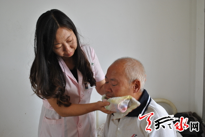 ????天天天水網訊(見習記者 黃虹)她的工作很瑣碎,就像居家過日子,只不過家庭成員多了點。她把護理對象都當成了家人一樣看待。老人眼中,她是善良的乖女兒,孩子心里,她是慈愛的好媽媽,她用真心、真情贏得了護理對象的信任和尊重。她就是天水市社會福利院護理員——薛曉慧。