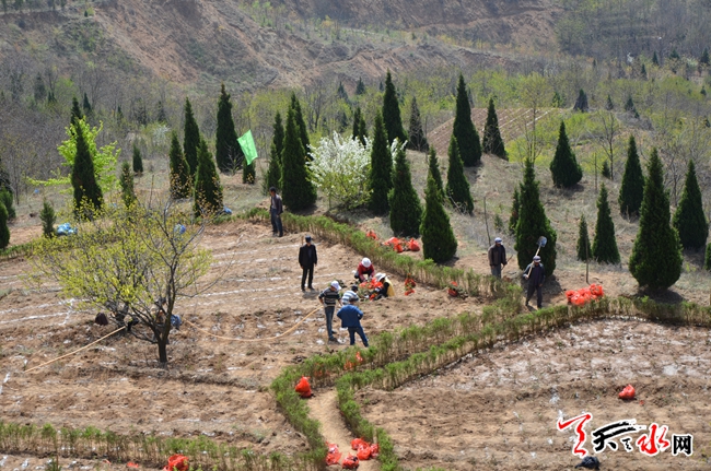 ????▲4月18日,工人們正在天水成紀(jì)新城北山生態(tài)觀園栽植花木。天水成紀(jì)新城北山生態(tài)觀園提升改造工程位于花牛鎮(zhèn)肖家莊北山,區(qū)域面積2009畝。工程按照“四季常青、三季有花、二季有果、春花秋實、綠美結(jié)合、應(yīng)綠盡綠”的建設(shè)思路,采取增色、增綠、增花及生態(tài)修復(fù)措施,將天水成紀(jì)新城北山營造成一個山水相間,春綠更碧,秋黃冬青,風(fēng)景如畫的生態(tài)景區(qū)。工程于今年三月中旬開始建設(shè),目前已接近尾聲。(天水日報記者 王曉馨 攝)