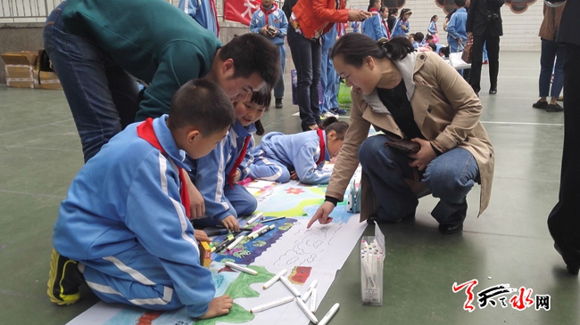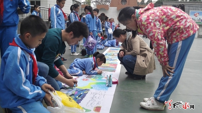 ????天天天水網(wǎng)22日16時訊 【記者 邵蘭霞】4月22日下午16時,市實驗小學(xué)的學(xué)生正用手中的畫筆繪制自己心中的綠色家園。