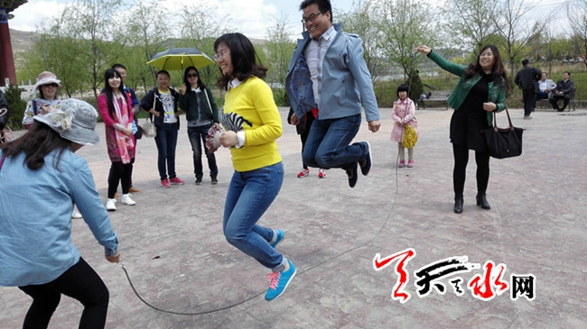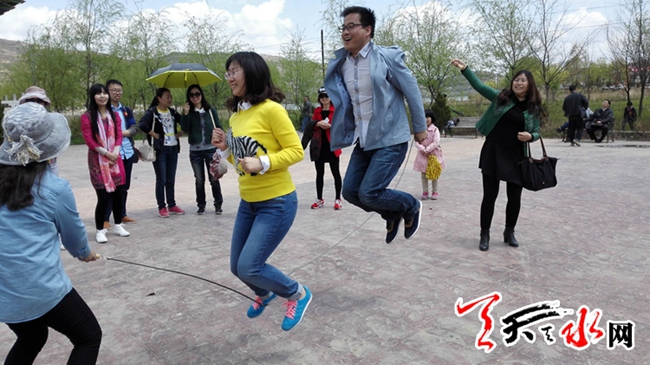 天天天水網(wǎng)訊?? 4月23日上午11時,天水日報社舉辦的春季文化活動在風(fēng)景秀美的隴南市西和縣晚霞湖畔盛情上演。一系列豐富多彩的拔河比賽、有獎競猜活動、跳繩比賽,給沉寂的湖畔帶來了歡歌笑語,風(fēng)景旖旎的美景讓游人流連忘返,樂不思蜀!本報記者???邵蘭霞攝