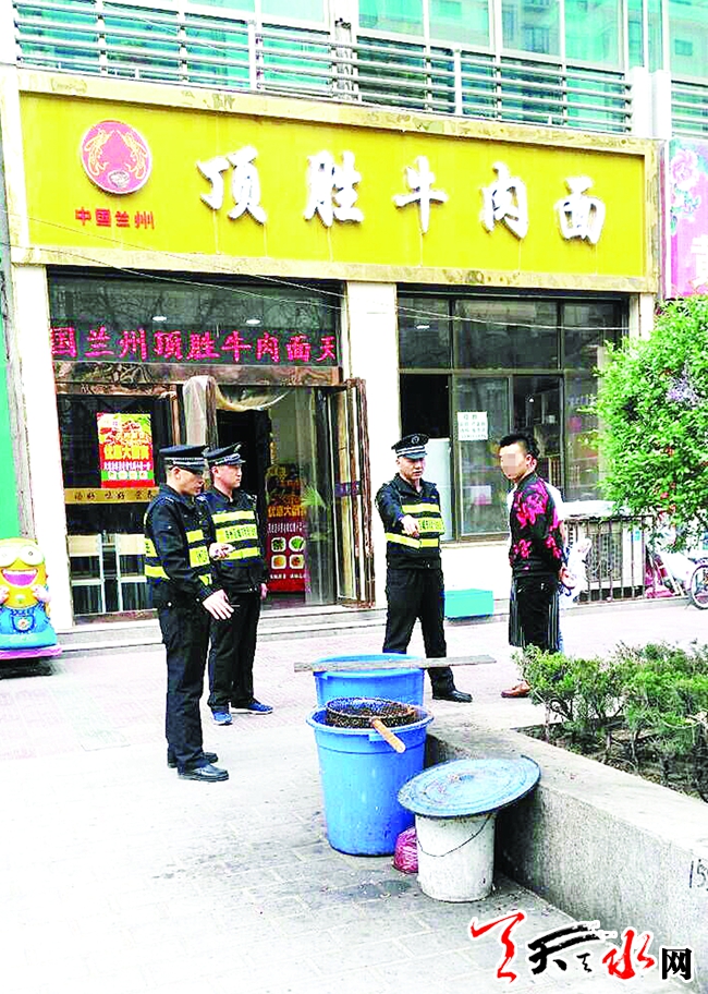 ????天天天水網(wǎng)秦州訊【記者 閆蓉芳】天氣漸熱,一些餐館隨意往路邊的水箅子里亂潑倒,還有的餐館在門前設(shè)置了泔水桶卻清理不及時(shí),以致餐廚垃圾堆積、氣味難聞,影響市容環(huán)境。對此,從4月18日開始,秦州區(qū)綜合執(zhí)法局西關(guān)中隊(duì)對轄區(qū)餐館進(jìn)行了檢查。對發(fā)現(xiàn)的10余家餐廚垃圾清理不及時(shí)以及存在亂潑倒行為的餐館,要求其當(dāng)場整改。(圖片由通訊員史曉晶提供)
