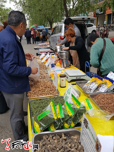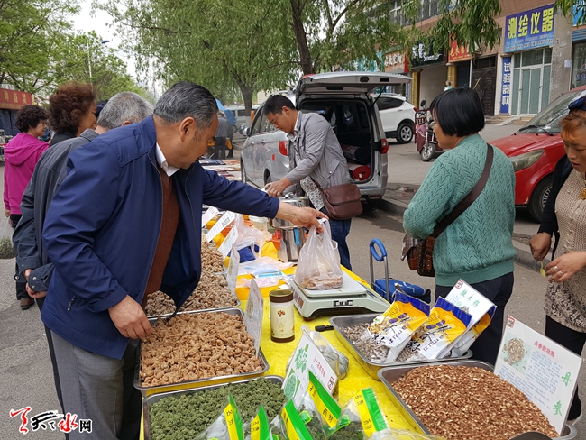 ????天天天水網(wǎng)25日14時(shí)訊【記者 常亮】4月25日中午,記者在秦州區(qū)永慶路看到,在位于永慶路西段有一處攤位許多市民扎堆在購買中藥。