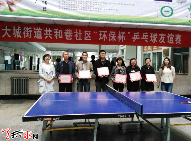 ????天天天水網(wǎng)訊【記者 常亮】近日,秦州區(qū)大城街道共和巷社區(qū)邀請(qǐng)轄區(qū)單位和轄區(qū)居民隆重舉行了“環(huán)保杯”乒乓球友誼賽。通過(guò)激烈的比賽共決出男女組一、二、三等獎(jiǎng)并為獲勝者頒發(fā)了榮譽(yù)證書(shū)和獎(jiǎng)品。此次活動(dòng)受到轄區(qū)單位和居民的熱情參與,大家都希望以后多搞一些這樣的互動(dòng)活動(dòng)。