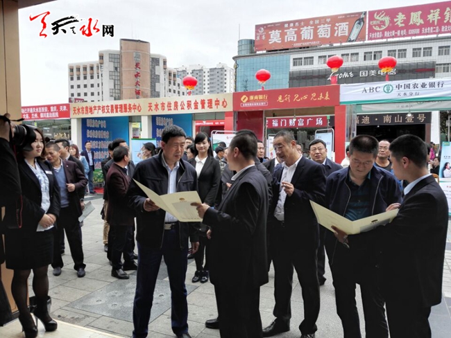 ????天天天水網(wǎng)25日17時訊【記者?李欣桐】4月25日,市委統(tǒng)戰(zhàn)部、市工商聯(lián)組織非公有制企業(yè)和非公有制經(jīng)濟代表人士參觀了在龍城廣場舉行的天水市2016年房地產(chǎn)交易推介會。