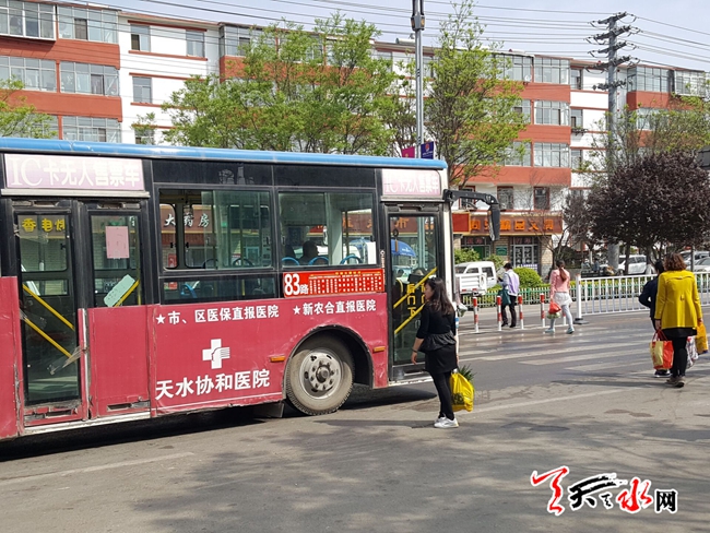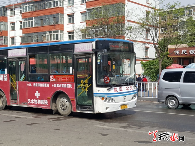????天天天水網(wǎng)26日10時訊【記者 常亮】4月26日上午,記者在秦州區(qū)成紀大道堅家河公交站候車時看到,新運行的83路公交已經(jīng)“開跑”。