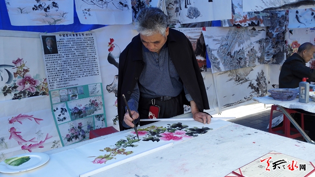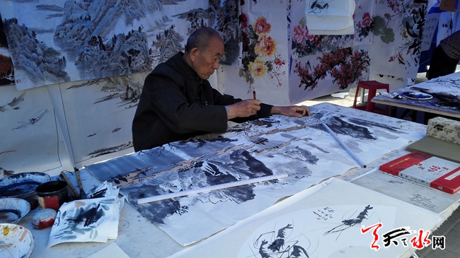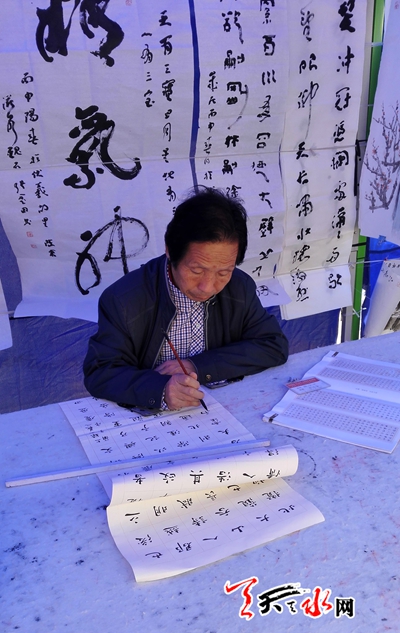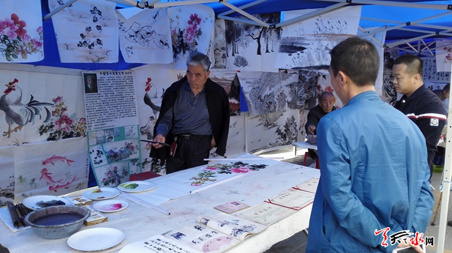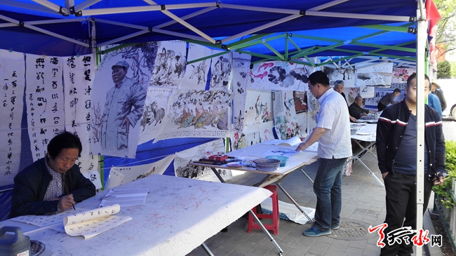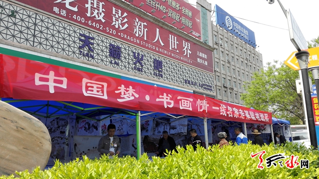 ????天天天水網(wǎng)26日11時(shí)訊【記者 楊旭 王明輝】4月26日,在秦州區(qū)自治巷口,中國(guó)夢(mèng)?書畫情一線名家在此揮毫潑墨,正在開展走基層書畫展活動(dòng)。記者在現(xiàn)場(chǎng)看到,過(guò)往市民紛紛駐足觀看,欣賞佳作。