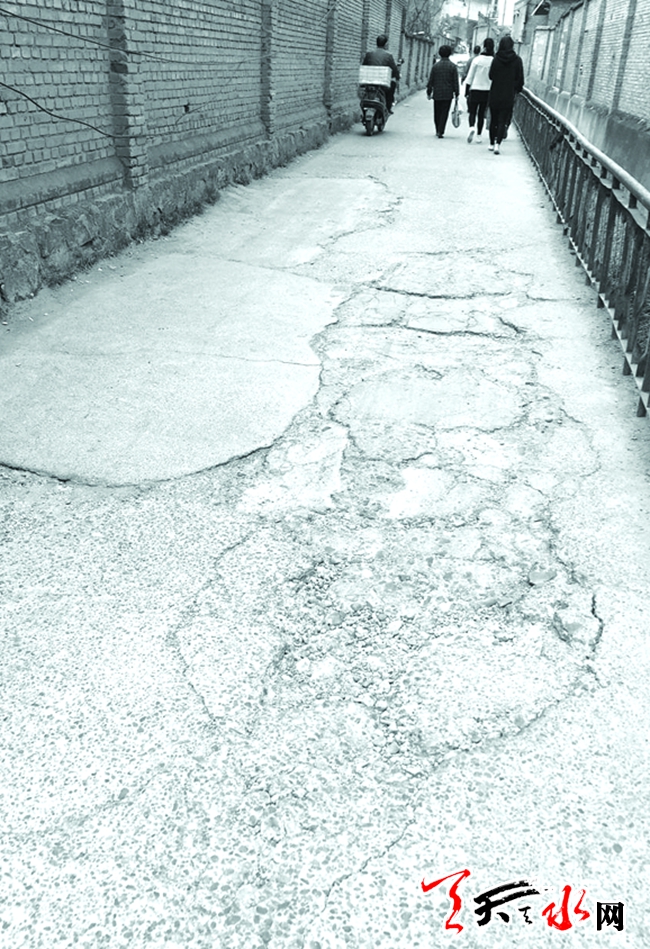 ????接到反映后,記者前往現(xiàn)場查看。王先生所反映的這條巷道位于秦州區(qū)暢和新城小區(qū)東側(cè),巷道約寬七八米,西側(cè)還有一條露天排洪渠,路面部分約有四五米寬。巷道北段連接到海林南廠家屬區(qū)大門外,南段連接到玉泉鎮(zhèn)李家村,屬于家屬區(qū)和李家村共用的一條巷道。巷道的路面上有四五塊破損區(qū)域,較嚴重的地方有大小不一的淺坑?!斑@個巷道比較窄,一輛車勉強通過,近期巷道的路面破損嚴重,出現(xiàn)幾個坑,開車變得難上加難。尤其到了晚上,巷道的光線比較暗,有時候看不清路面狀況,開車經(jīng)常被坑顛一下?!蓖跸壬f,最近看新聞,看到秦州、麥積兩區(qū)有不少小巷道、路面在進行翻新改造,他想通過媒體咨詢一下,海林南廠家屬區(qū)門口的這條路是否可以維修一下。