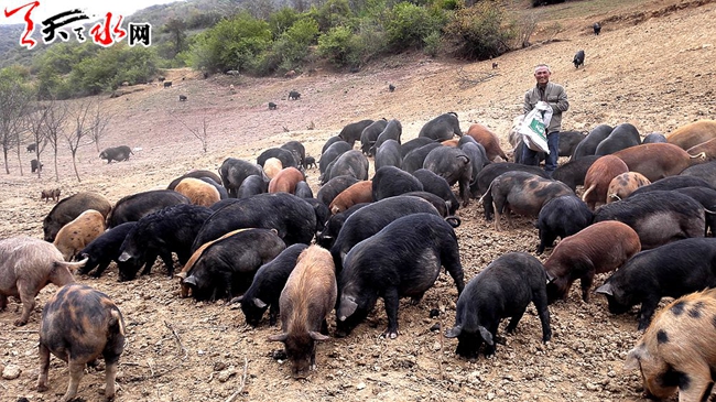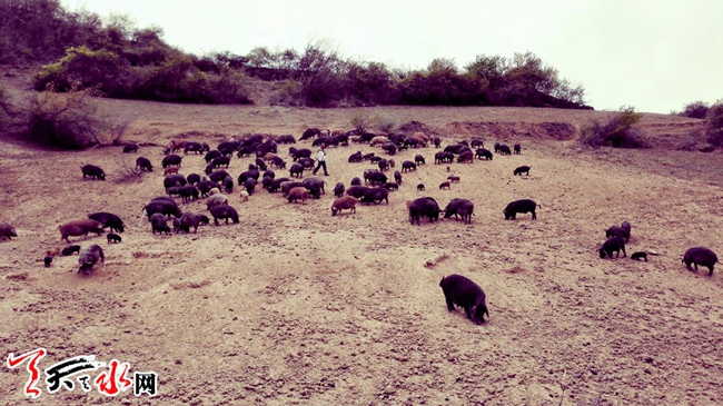 ????10年前,出生于小隴山的陳剛開始在這片荒涼貧瘠的山區(qū)種植核桃。一次偶然的機(jī)會(huì),他從電視農(nóng)業(yè)頻道看到養(yǎng)野豬有著廣闊的市場(chǎng)前景。他腦洞大開,“歸鳳山野豬成群,何不通過馴養(yǎng)野豬‘借雞生蛋’成就一番事業(yè)呢?”說干就干,陳剛和妻子吃慷咽菜,節(jié)衣縮食,吃住山澗,挖窯洞、建豬舍、開荒辟道修通道路后,在集市上購買了6頭家豬,通過家豬與野豬的“聯(lián)姻”,第一年他的野豬就繁殖到30多頭。