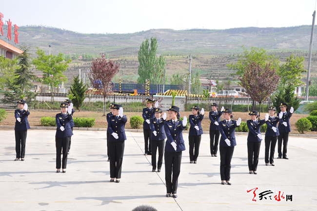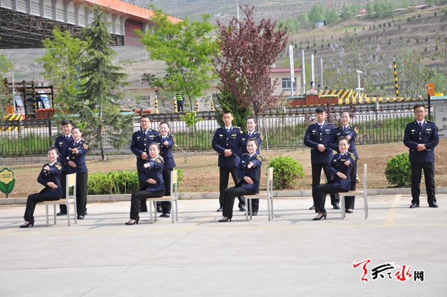????天天天水網(wǎng)26日15時訊 【記者 邵蘭霞】4月26日上午,甘肅省天水高速公路管理處職工在麥積區(qū)甘泉鎮(zhèn)屈家坪村的寶天高速公路收費(fèi)管理所正在進(jìn)行服務(wù)技能展示競賽。