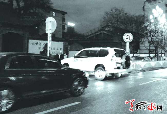 ????4月25日晚,在市第一人民醫(yī)院門前專為急救車開辟的通道處,不時(shí)有機(jī)動(dòng)車在此掉頭,全然不顧兩邊高懸的禁止掉頭標(biāo)識(shí),給自己和他人造成極大的交通安全隱患。(天水晚報(bào)記者 蘇中豹/攝)