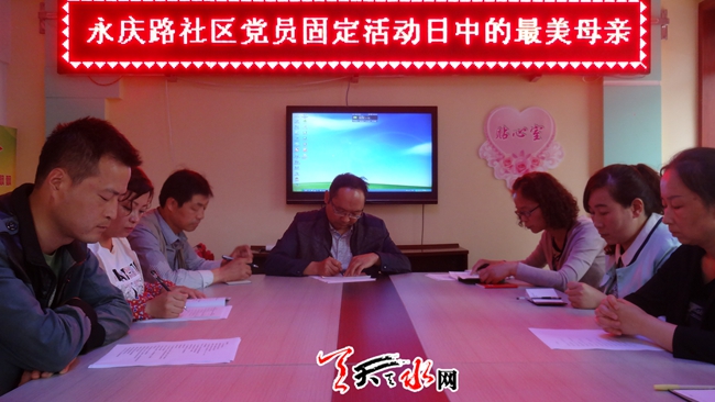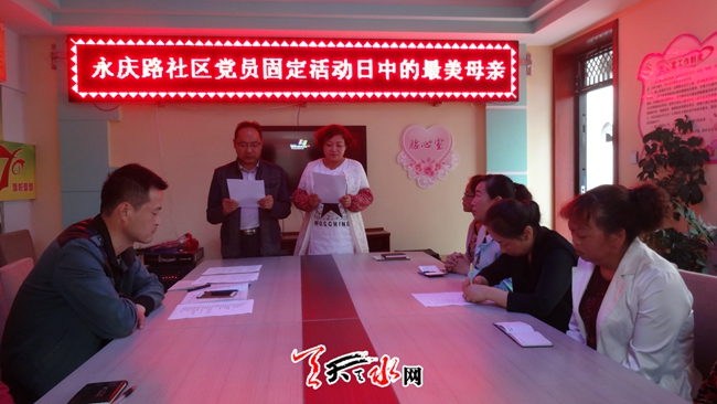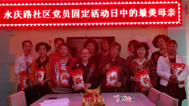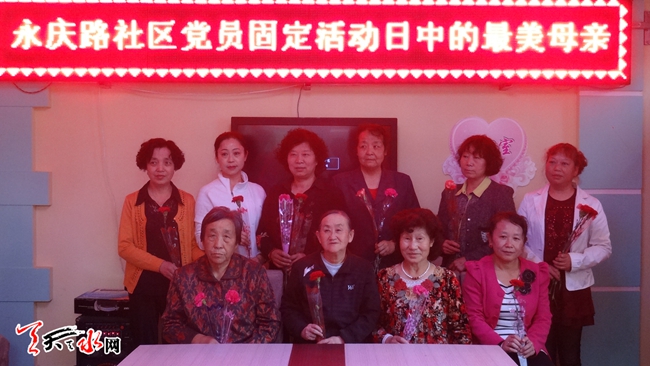 ????天天天水網訊 ?5月6日是永慶路社區(qū)第三個黨員固定活動日,恰逢母親節(jié)來臨之際,社區(qū)在為期一個月的最美母親的尋找過程中,找到了15位最美母親。今天,我們?yōu)檫@15位最美母親送上節(jié)日的祝福。