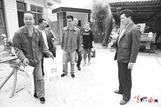 ????5月6日,麥積區(qū)地稅局黨委所屬7個支部的12名黨員到麥積區(qū)元龍鎮(zhèn)佃兒下村參加地稅黨員與聯(lián)系村黨員“結(jié)對共建助發(fā)展”啟動儀式,并慰問了村上6戶貧困家庭。(喬理 攝)