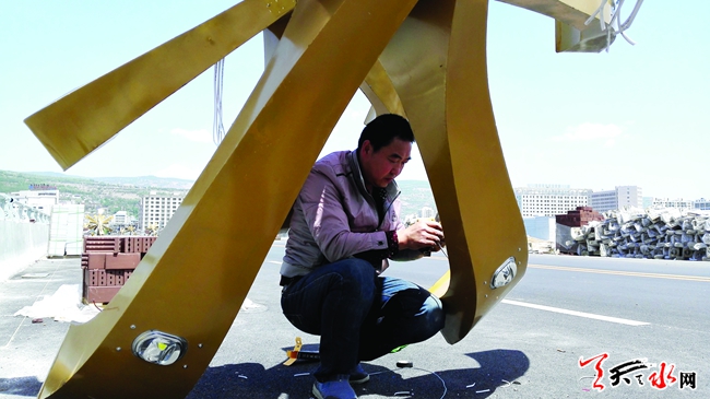 ????該橋路燈安裝完成后,夜間的藉河雙橋大橋?qū)⒏咏k麗多彩,為穿城而過的藉河再添一道靚麗的風(fēng)景。(記者 蘇中豹 攝)