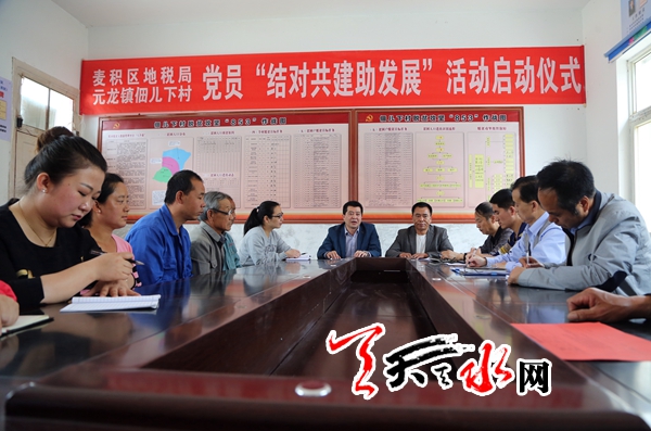 ????天天天水網(wǎng)訊 天水市麥積區(qū)地方稅務(wù)局黨委在全體黨員中扎實(shí)開(kāi)展“兩學(xué)一做”,認(rèn)真落實(shí)“黨員固定活動(dòng)日”制度,把開(kāi)展“兩學(xué)一做”和“黨員固定活動(dòng)日”與精準(zhǔn)扶貧緊密結(jié)合。5月6日,麥積區(qū)地稅局黨委書記、局長(zhǎng)史煒、黨委委員、副局長(zhǎng)霍紅霞帶領(lǐng)該局黨委所屬7個(gè)支部的12名黨員到麥積區(qū)元龍鎮(zhèn)佃兒下村參加啟動(dòng)儀式并慰問(wèn)了村上四戶貧困家庭。