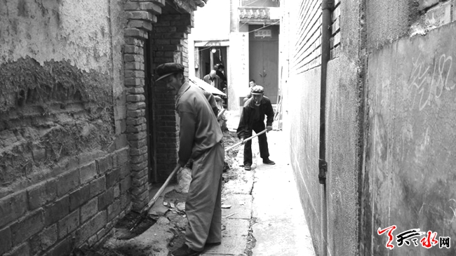 ????5月9日,工人正在秦州區(qū)南城根西巷道對路基、路面、排水等進行整修改造,旨在進一步完善城區(qū)背街小巷市政基礎設施功能,改善市民生活環(huán)境。(天水日報記者 姬旺芳 攝)