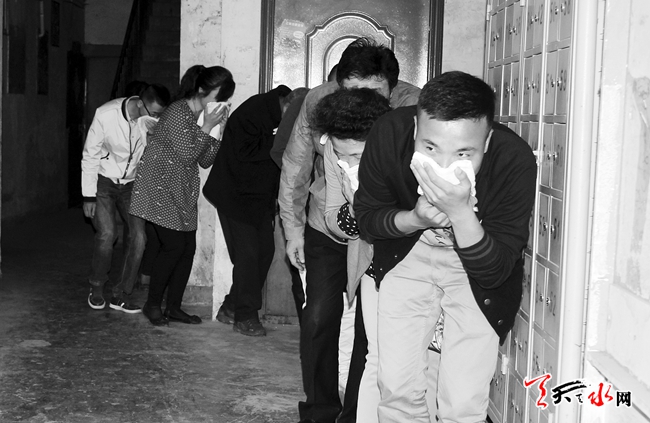 ????秦州區(qū)大城街道進步巷社區(qū)日前組織居民開展了消防演練活動。社區(qū)干部向居民詳細講解了在發(fā)生火災后的基本撲救方法、如何在火災中自救以及滅火器的正確使用方法等,并組織居民在秦苑小區(qū)進行了模擬火災現(xiàn)場逃生演練及現(xiàn)場干粉滅火。(天水日報記者 周文濤 攝)