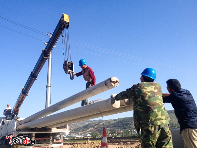 ????5月10日,工人正在成紀(jì)大道南側(cè)架設(shè)電線桿。據(jù)悉,成紀(jì)大道主體工程已基本完工,目前正在進行配套設(shè)施建設(shè)。預(yù)計后半年竣工通車。(天水日報記者 周文濤 孫鎮(zhèn) 攝)