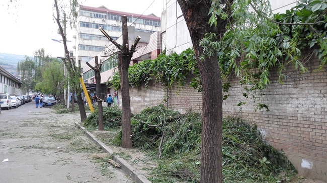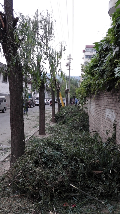 ????天天天水網(wǎng)11日18時(shí)訊【記者何永德】5月11下午6時(shí)多,記者路過(guò)友好路時(shí),看到一排柳樹(shù)己徹底“削發(fā)”,原來(lái)的風(fēng)吹楊柳輕怫面的景象己蕩然無(wú)存,據(jù)路人講,“剪發(fā)”的目的是為了清除出行的視覺(jué)障礙,不過(guò)這手下得確實(shí)有點(diǎn)狠。