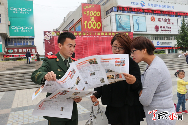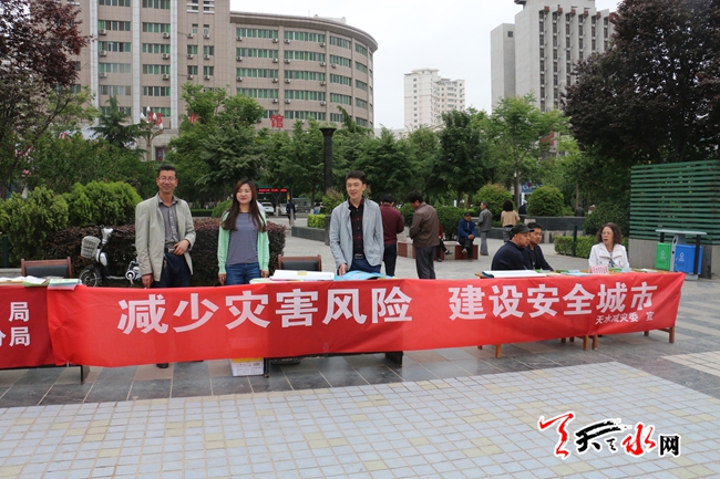 ????當日是第八個全國防災減災日,天水市減災委以及國土資源、質監(jiān)、消防等部門在龍城廣場開展了以“減少災害風險, 建設安全城市”為主題的防災減災宣傳活動,通過設置宣傳展板,發(fā)放宣傳資料、接受咨詢等形式,進一步增強社會公眾的防災減災意識,提高各界對防災減災工作的關注度和參與度。