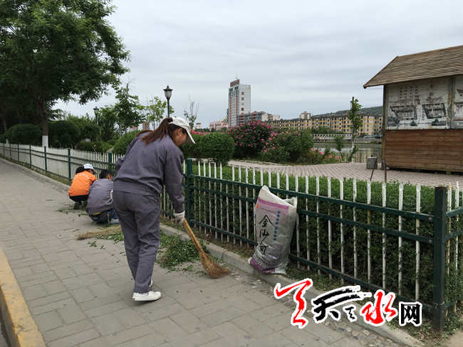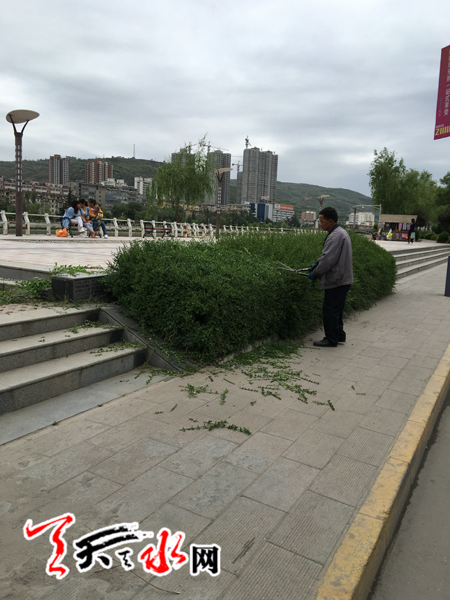 ??? 天天天水網(wǎng)5月12日訊??【記者 甄娜】??5月12日下午,天水湖管理處的工作人員正忙著修剪藉河風(fēng)情線的雜草。工作人員稱,離伏羲文化旅游節(jié)越來越近了,為了提升天水市形象,他們提前做準(zhǔn)備。