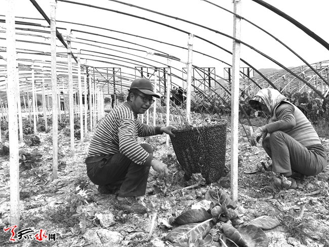 ????5月9日,武山縣城關(guān)鎮(zhèn)清池村村民周新順和家人正在清池國(guó)家級(jí)蔬菜標(biāo)準(zhǔn)化核心示范區(qū)內(nèi)的自家菜園里撿拾尾菜。該園區(qū)年產(chǎn)各類(lèi)蔬菜2萬(wàn)多噸,是武山縣最大的無(wú)公害蔬菜生產(chǎn)基地。(天水日?qǐng)?bào)記者 李欣桐 攝)