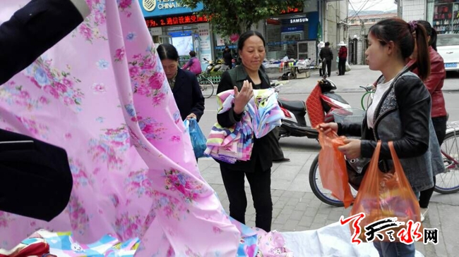 ????天天天水網17日17時訊【記者?文都?永德?楊旭?明輝】?5月17日,在清水縣城,一攤販批發(fā)促銷的床單雖然價格低廉,但一天成上百條的銷售量,也讓攤販看到了數(shù)量優(yōu)勢所帶來的高額回報!別看小攤小販街邊擺攤買賣掙不了錢,其實依靠薄利多銷的交易法則,也能收獲豐厚收益。
