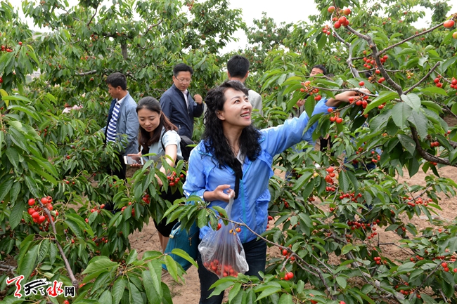 ????5月17日,游客在秦州區(qū)一大櫻桃園內自行采摘。 隨著天水市本地大櫻桃陸續(xù)上市,大櫻桃采摘游日漸受到青睞,市民一邊品嘗新鮮的大櫻桃,一邊體驗采摘樂趣。(天水日報記者 周文濤 攝)